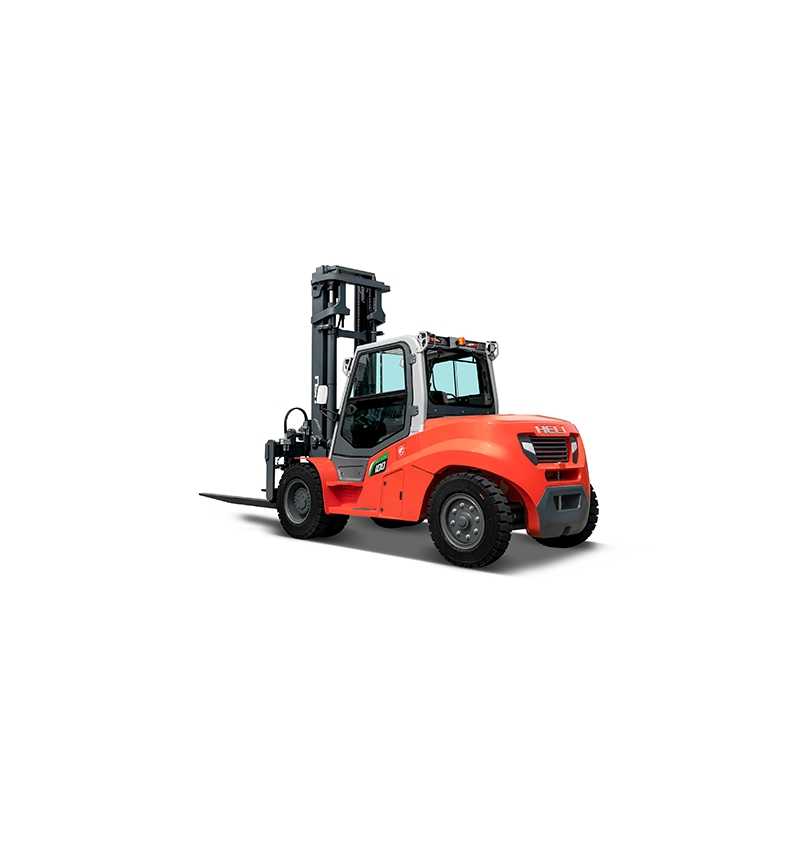 Chariot élévateur électrique CPD100-GA2, HELI, à conducteur porté assis. Chariot élévateur doté de 4 roues, permettant de déplacer des charges de 10 000 kg. Il peut atteindre une hauteur de levage de 8 mètres, avec un mât triplex. Ce chariot électrique peut se déplacer à une vitesse de 15 km/h et franchir des pentes jusqu'à 20%. Ce chariot possède un rayon de braquage de 3320 mm. Conçu avec une batterie 80V / 1240Ah. Poids total du chariot avec batterie 13 200 kg. Prix sans chargeur. Le CACES R489 Catégorie 4 est recommandé pour l'utilisation de ce chariot.