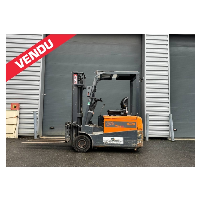 Chariot élévateur électrique Lithium d'occasion. Matériel de levage doté d'une excellente robustesse, précision et fiabilité. Idéal pour des opérations en intérieur. Solution performantes pour les professionnels. Chariot d'occasion modèle 15TA3, de la marque OMG. Il est doté d'une capacité de charge de 1500 kg et d'une hauteur de levage de 4500 mm. Il dispose d'un mât triplex avec une grande levée libre GLL. Année 2012. Heures de fonctionnement : 1 369h. Equipements du chariot élévateur d'occasion : TDL tablier à déplacement laréal, batterie 48V avec remplissage centralisé, chargeur 48V / 575Ah. Matériel révisé et garanti 3 mois.