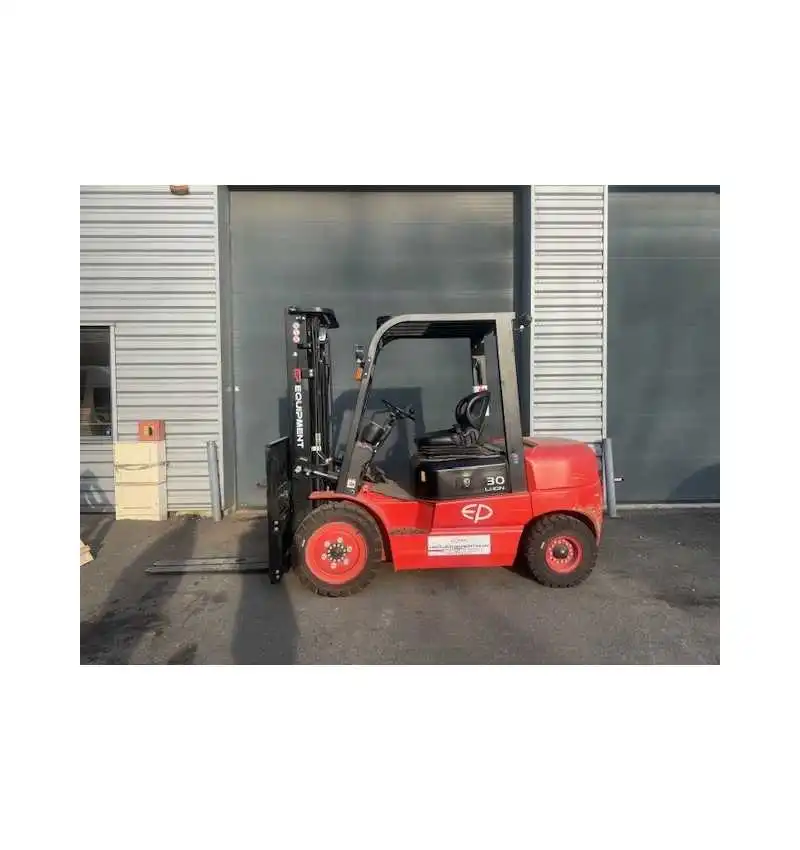 Chariot élévateur électrique Lithium ion d'occasion. Première main. Modèle : EFL 302. Marque : EP Equipment. Capacité de charge : 3000 kg. Batterie Lithium. Chargeur externe. Elévation : Triplex 4800 mm. Grande levée Libre. T.D.L : Intégré. Année : 2021. Nombre d’heures : 220h Certifié. Garantie : 1 AN pièces