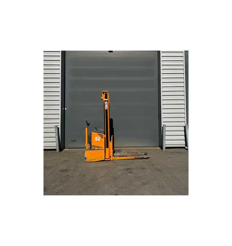 Gerbeur electrique occasion 710 K. Capacité de charge 1000 kg. Hauteur d'élévation 3100 mm mât duplex. Elévation proportionnelle par distributeur. Grande levée Libre. Année : 2005. Nombres d’heures : 575. Batterie : 215 A/H remplissage centralisé. Chargeur 24 Volts mono. Garantie 3 mois pièces