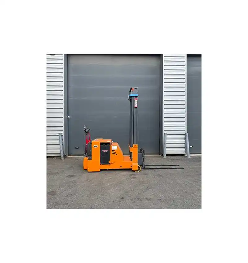 Gerbeur electrique occasion 715 FS. Capacité de charge 1200 kg, avec tablier avancé de 200 mm. Hauteur d'élévation du gerbeur electrique 3600 mm mât duplex. Elévation proportionnelle. Inclinaison du mât. Année 2012. Nombres d’heures : 1042. Batterie : 360 A/H. Chargeur 24 Volts mono. Garantie 6 mois pièces.