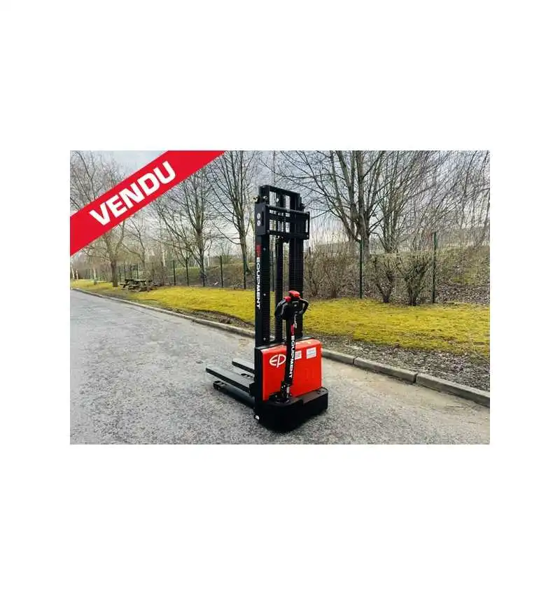 Gerbeur électrique Lithium d'occasion de la marque EP. Capacité de charge : 1200 kg. Hauteur de levage : Mât duplex 3300 mm. Année 2021. Nombre d'heures : 45. Batterie Lithium 24V. Chargeur incorporé. Garantie 1 an pièce ou 250 heures.