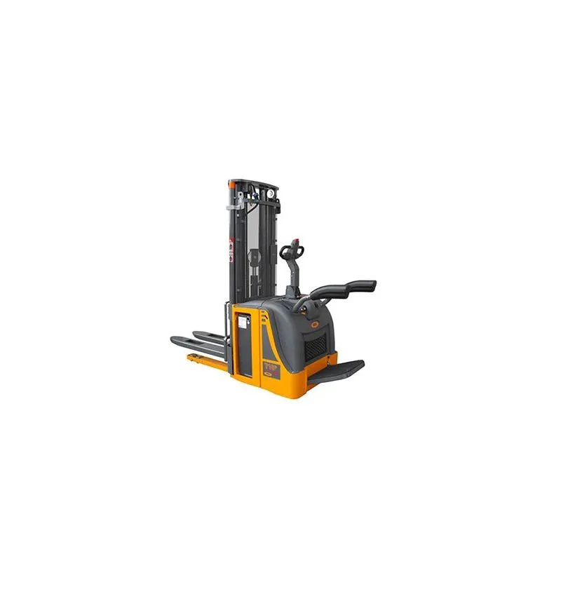 Location gerbeur électrique 720 P.ac auto-porté avec plateforme rabattable. Location courte ou longue durée gerbeur électrique avec capacité de charge 2000 kg. Location gerbeur électrique OMG idéal pour la manutention des charges sur de longues distances.