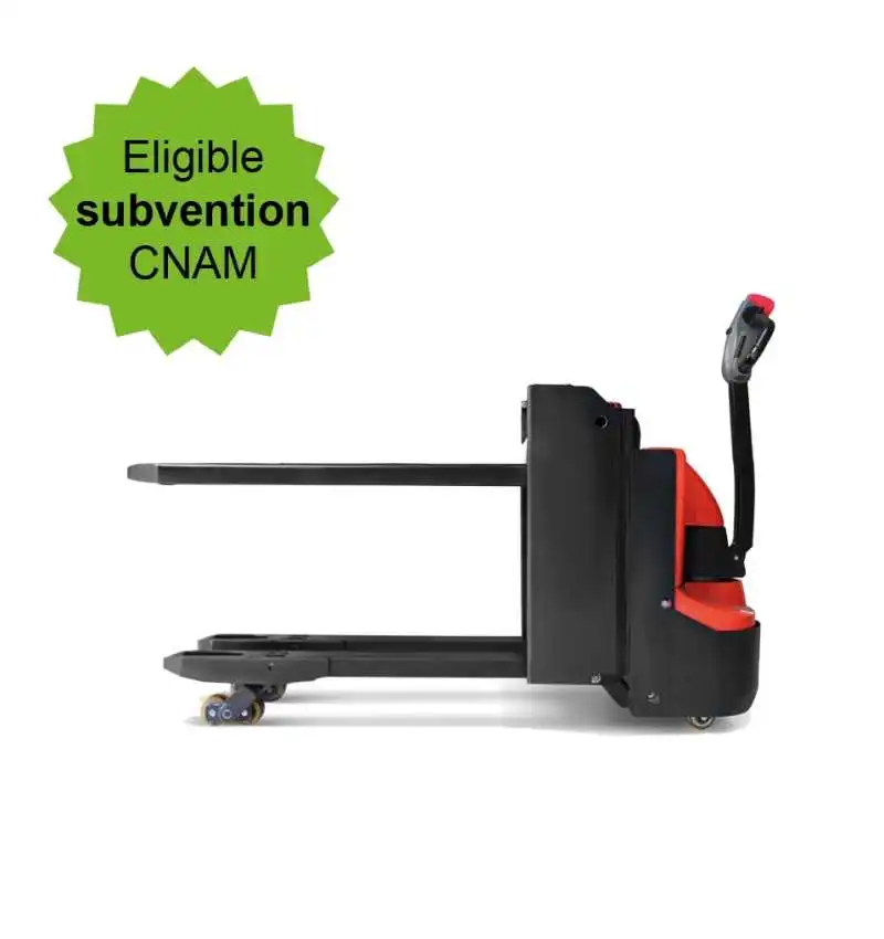 Transpalette électrique EPT20-20WAi avec une fonction mise à niveau (hauteur de levage des fourches jusqu'à 540 mm) et hauteur totale d'élévation sur fourches de 635 mm. Transpalette à conducteur accompagnant, conduite par timon central, capacité de charge en fonction transpalette 2000 kg, capacité de la mise à niveau des fourches 650 kg, porte deux palettes à la fois. Performant et fiable, il double l'efficacité de travail. Livré avec batterie et chargeur inclus. Ce matériel ne nécessite pas l'obtention du CACES.