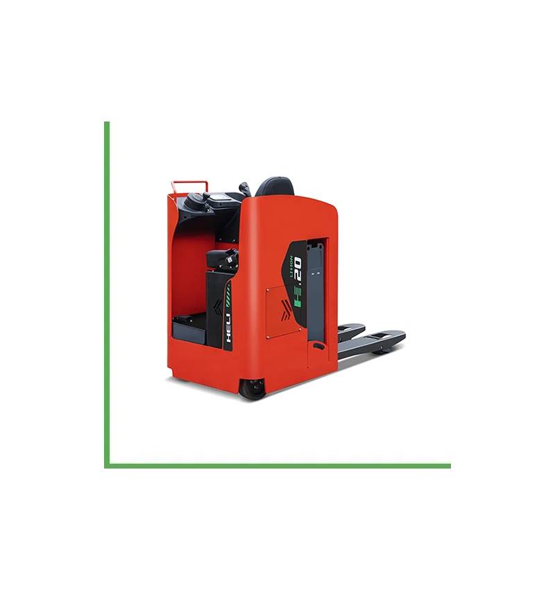 Transpalette électrique batterie lithium HELI CBD20-A2SZLIH, à conducteur porté assis. Il est doté d'une capacité de charge de 2000 kg. Ce transpalette permet de soulever des charges à une hauteur de 215 mm. Ce transpalette électrique est conçu avec des fourches standards de 1150 mm. Il est doté d'un rayon de braquage de 1 700 mm. Il peut se déplacer à une vitesse de 12.5 km/h. Pente franchissable 13%. Batterie lithium 24V / 404Ah. Batterie garantie 1 an. Le CACES R489, Catégorie 1A est recommandé pour l'utilisation de ce transpalette.